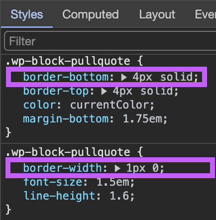 If we inspect the page we can notice that we have both `1px` and `4px`,
