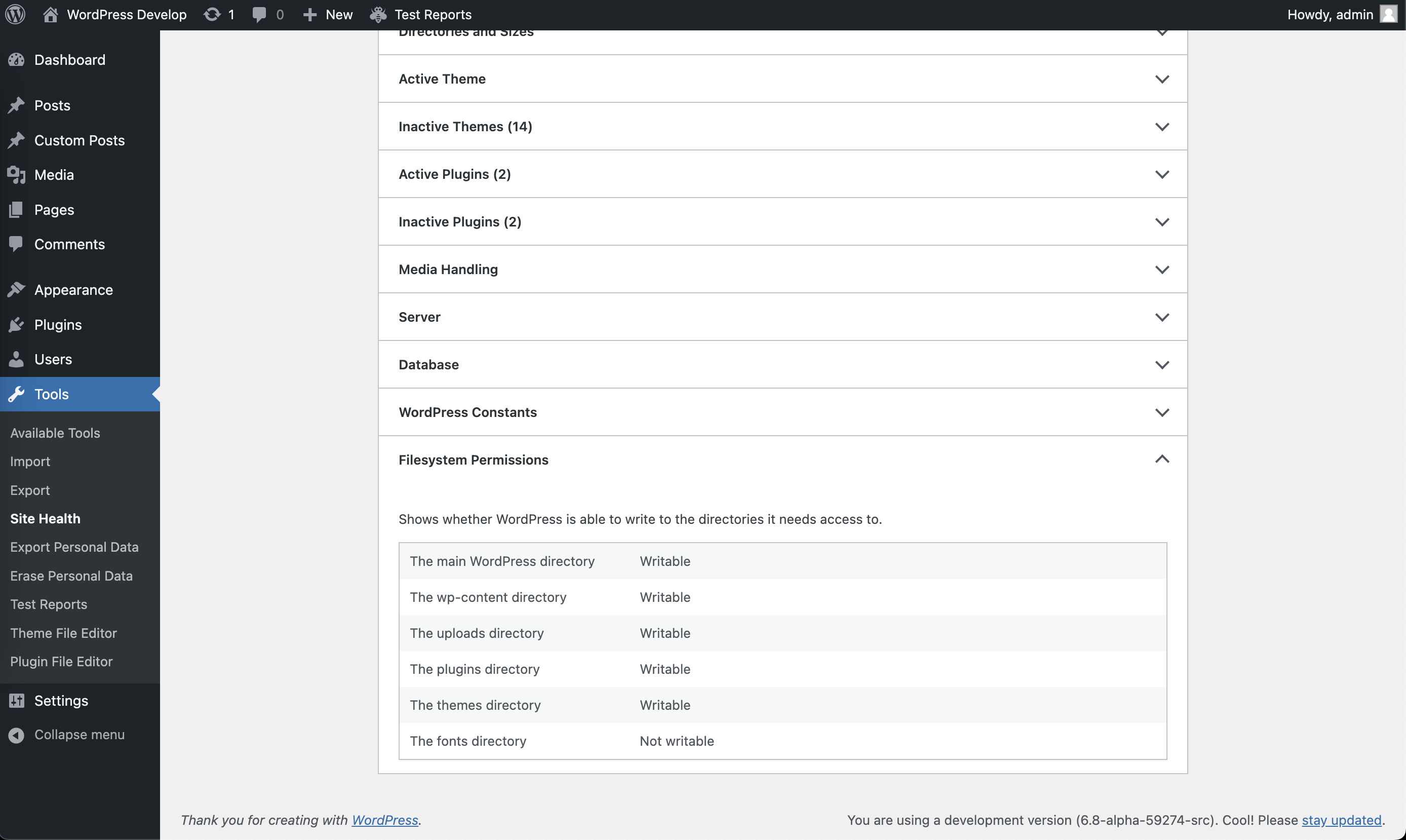 - WordPress: 6.8-alpha-59274-src