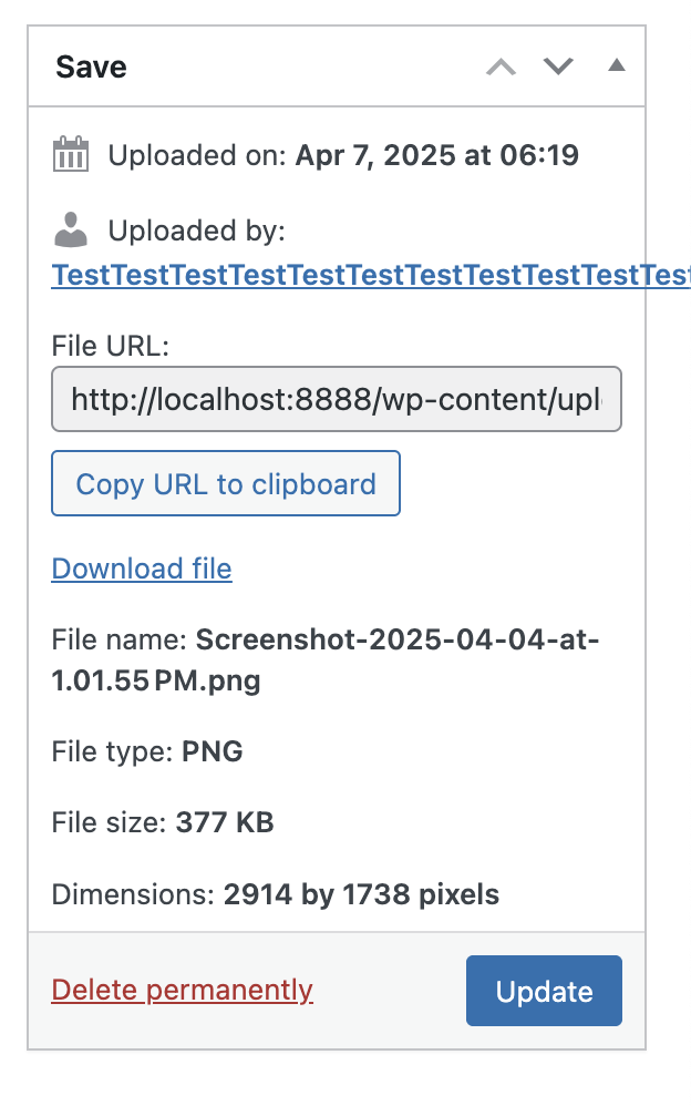 overflow on the Edit Media screen (wp-admin/post.php?post=ID&action=edit