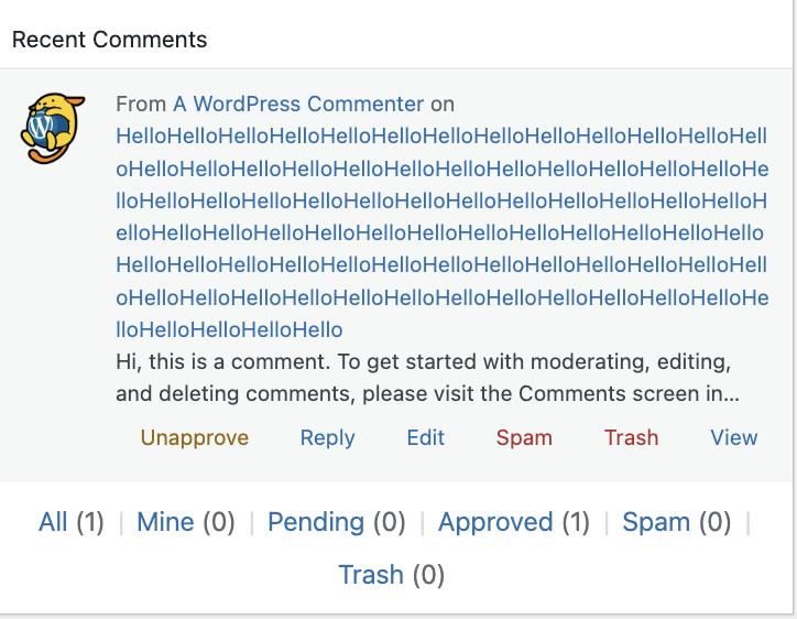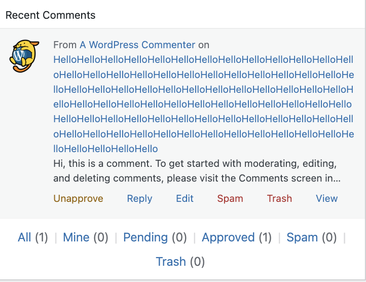 In the Dashboard → Activity widget, on mobile or narrow screens, comment