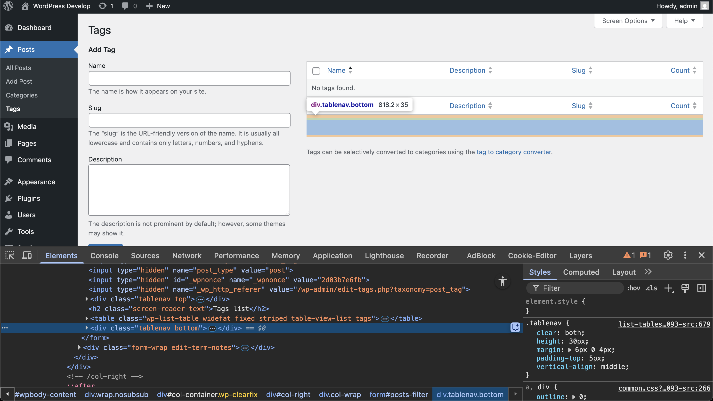 3. Observe the spacing between the table and the “No tags found.”