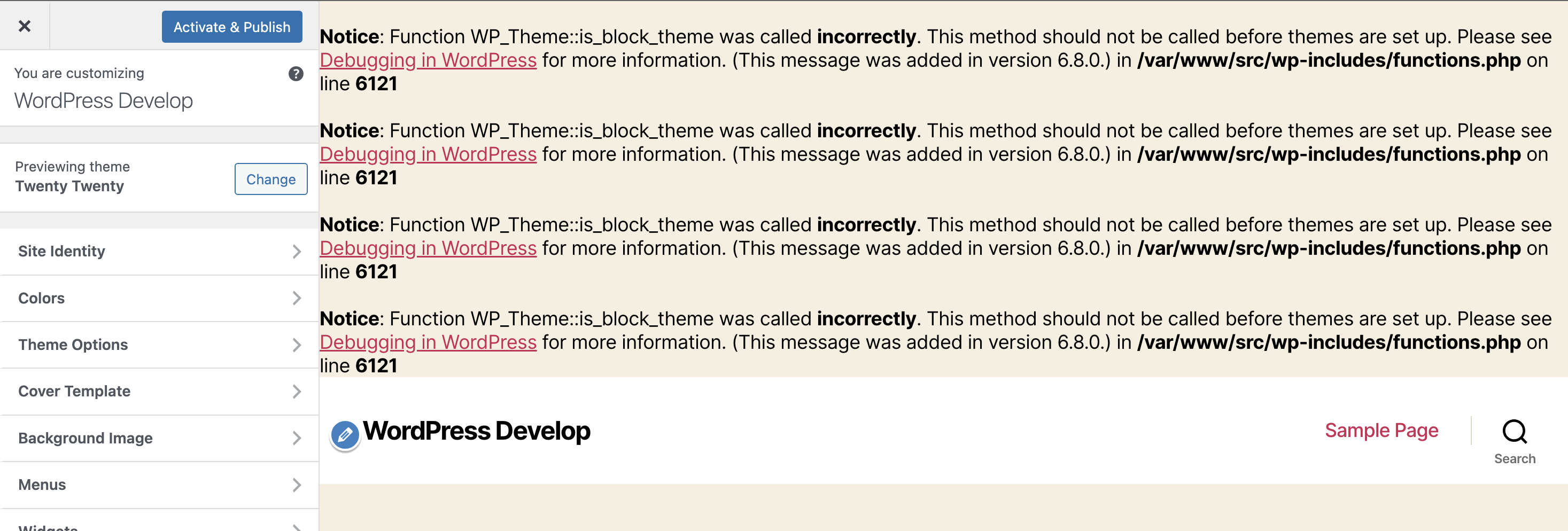 ` Notice: WP_Theme::is_block_theme was called incorrectly. This method